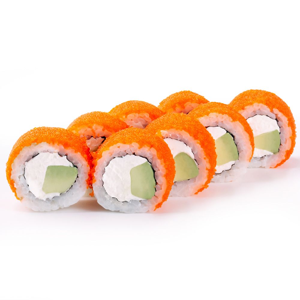 Рис, нори, сыр творожный, авокадо, икра летучей рыбы