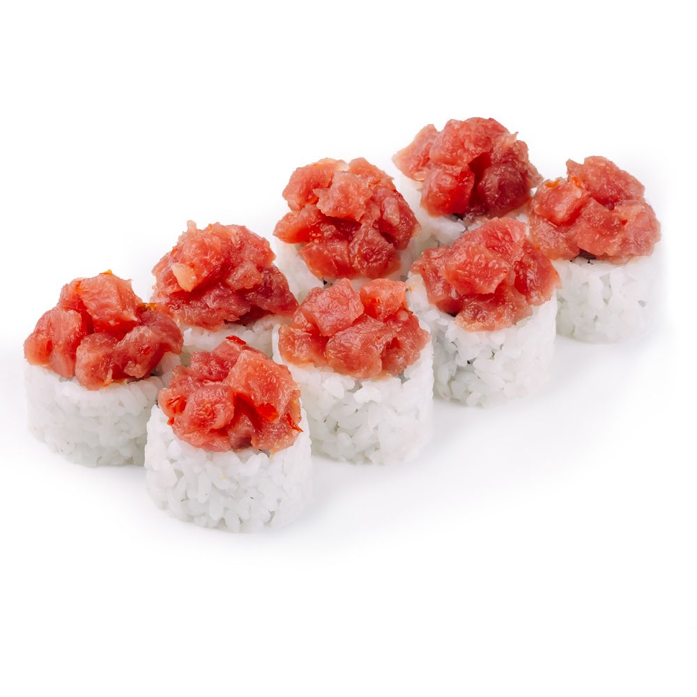 Рис, нори, сыр творожный, авокадо, тунец, соус «Сладкий чили»
