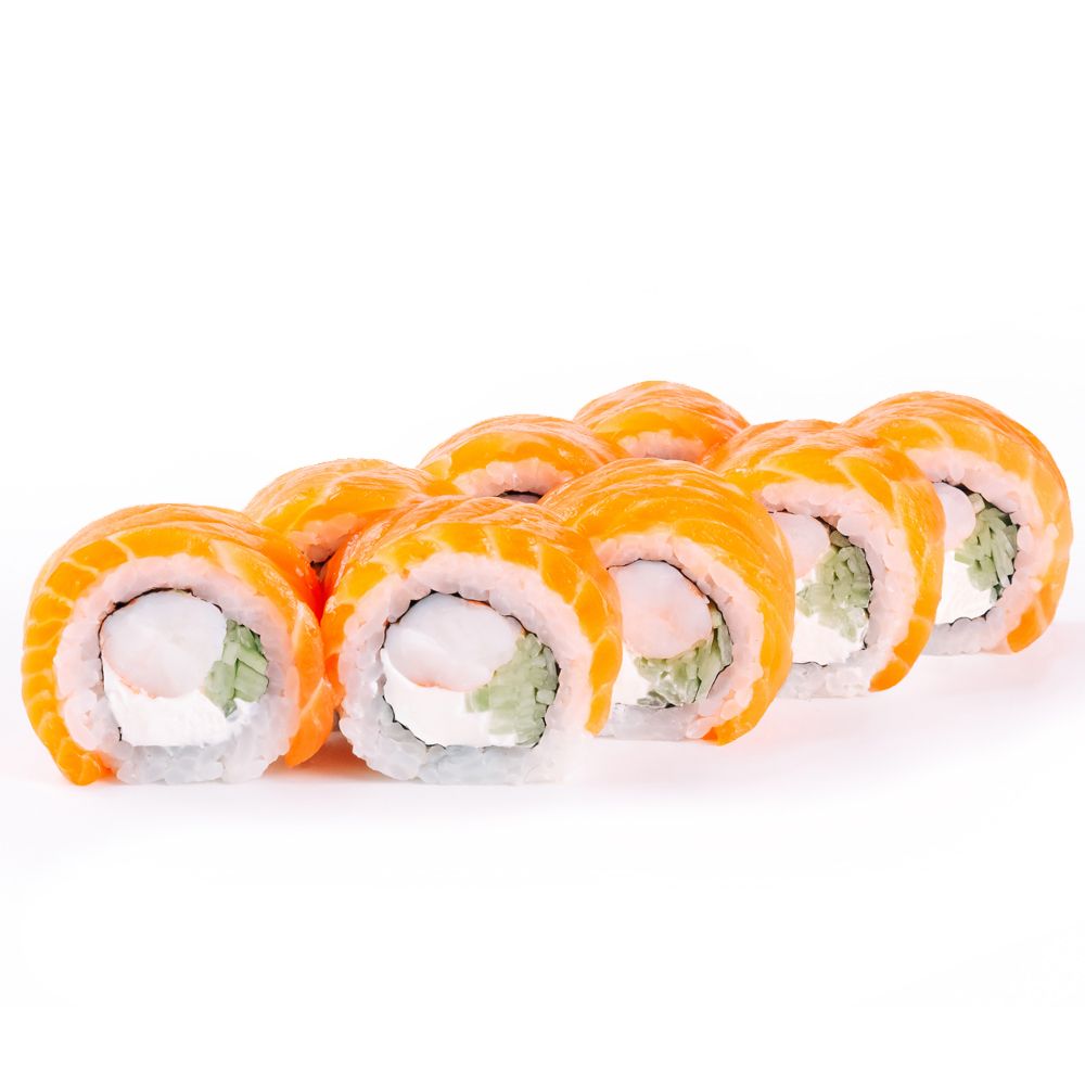 Рис, нори, сыр творожный, огурец, форель, креветка тигровая