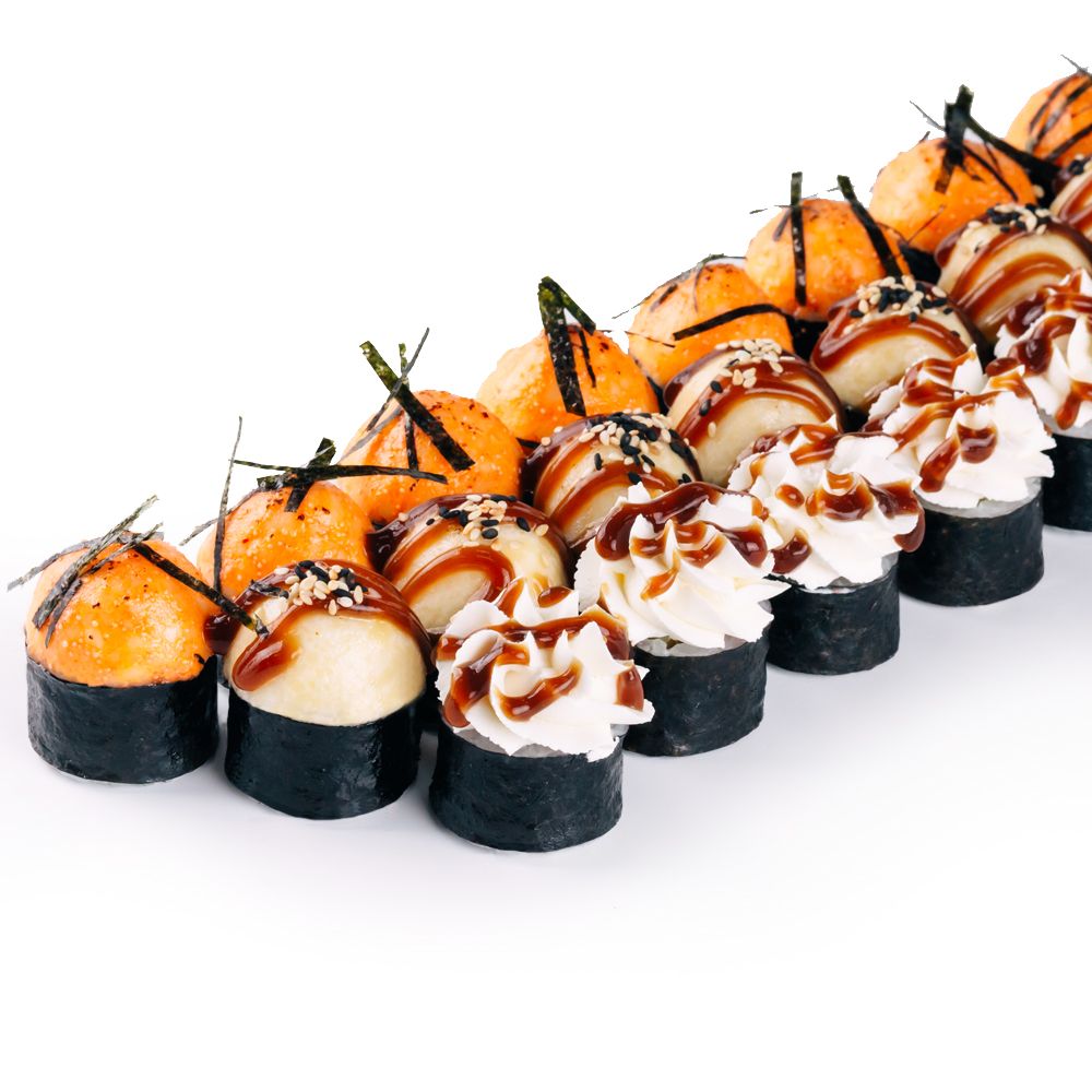 Ролл «Татаки сяке», ролл «Татаки эби», ролл «Фудзи» *Роллы из категории «Татаки» не являются запечёнными (тёплыми)
